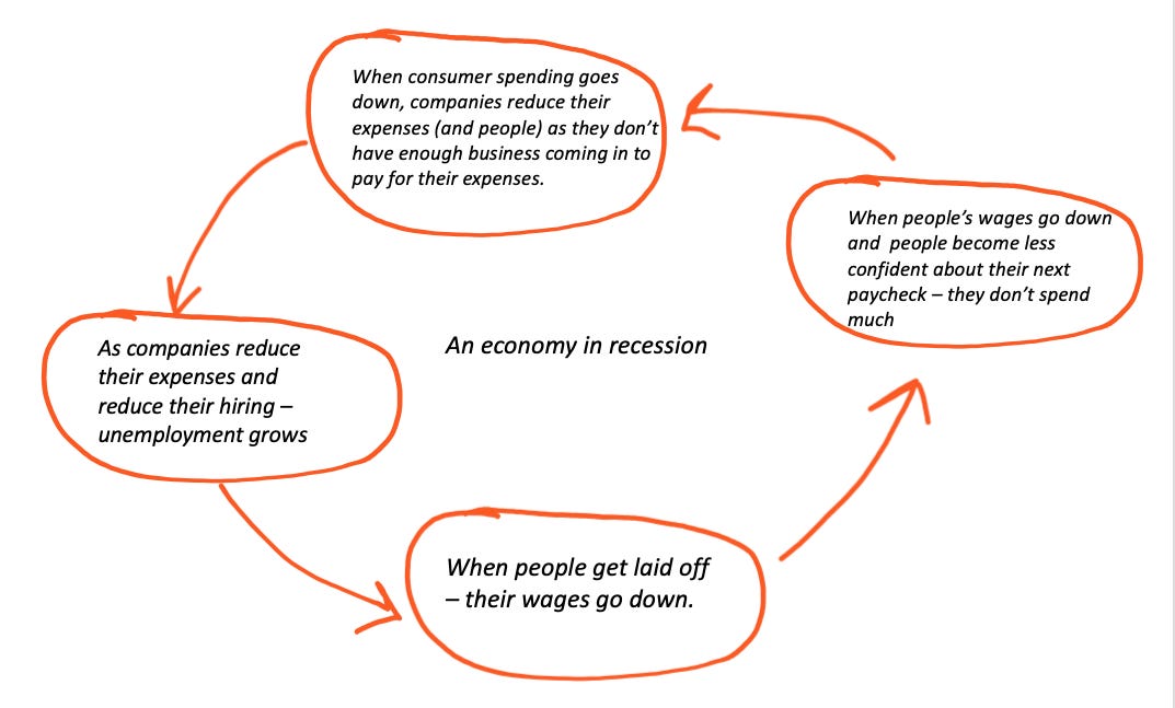 Recessionary times are tough on people and the government will do everything to break the above cycle (especially in an election year) by injecting a lot of capital into the economy to prop up consumer spending. However by most estimates it will require at-least 6-9 months to get the economy back on track.